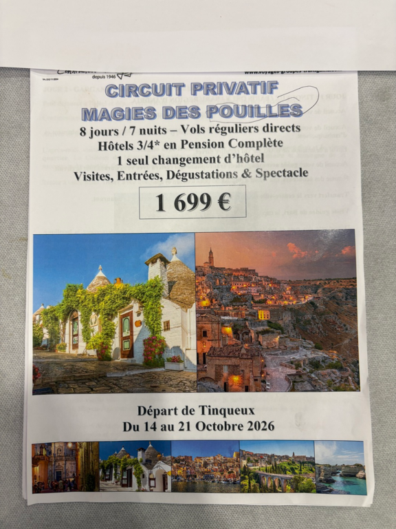 L’association AU FIL DU TEMPS organise un voyage en Italie